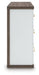 - Dresser with two-tone finish (dark brown finish over replicated walnut grain; matte white finish)